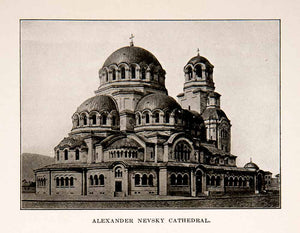 This is an original 1914 black and white halftone print of the Alexander Nevsky Cathedral in Sofia, Bulgaria. It is the second largest cathedral in the Balkan Peninsula.