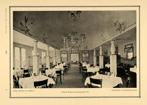 This is an original 1914 halftone print of the interior of a wine restaurant of the Werkbund Exhibition of Cologne, Germany in 1914. The architect of the building was Bruno Paul of Berlin.