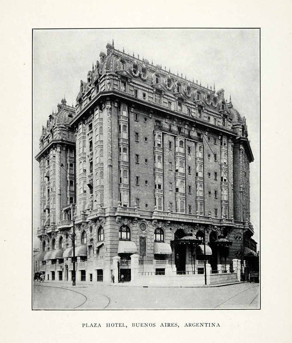 This is an original 1914 halftone print of the Buenos Aires Marriott Plaza Hotel, previously known as the Plaza Hotel, a five star hotel located on the Florida Street in the city of Buenos Aires, Argentina.