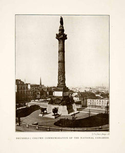 This is an original 1914 black and white halftone print of "Brussels; Column Commemorative of the National Congress." This image captures the Congress Column as it appeared in the early twentieth century. Situated on the Place du Congrès in Brussels, the monument commemorates the formation of the Belgian state, and act achieved by the National Congress in 1830-31. Atop the column resides a stature of King Leopold I by Guillaume Geffs.