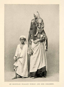 This is an original 1914 black and white halftone print of an Egyptian peasant woman and her children.
