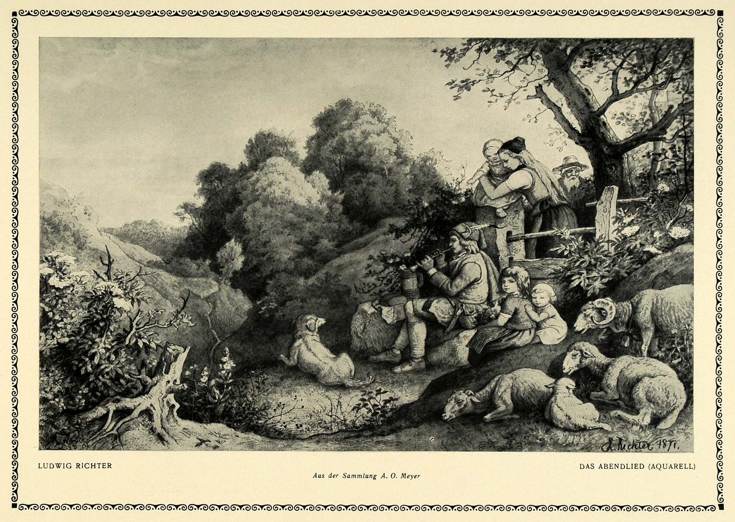 This is an original 1914 halftone print of Das Abendlied by Adrian Ludwig Richter. Richter was a German painter and etcher, who was born at Dresden. He was the most popular and most typical German illustrator of the middle of the 19th century.