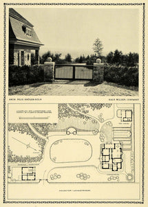 This is an original 1914 halftone print of the Wild House by Felix Kruger. This image includes an image of the house along with the floor and landscape plans.