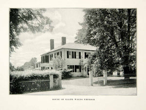 This is an original 1914 black and white halftone print of the house of famous American author, Ralph Waldo Emerson located near Concord, Massachusetts.