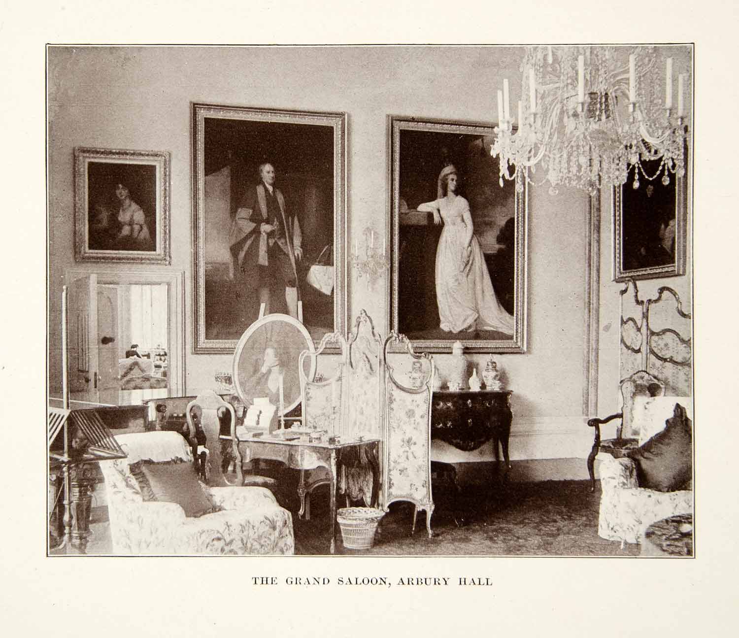 This is an original 1914 sepia halftone print of the Grand Saloon inside Arbury Hall located in Nuneaton , Warwickshire, England.