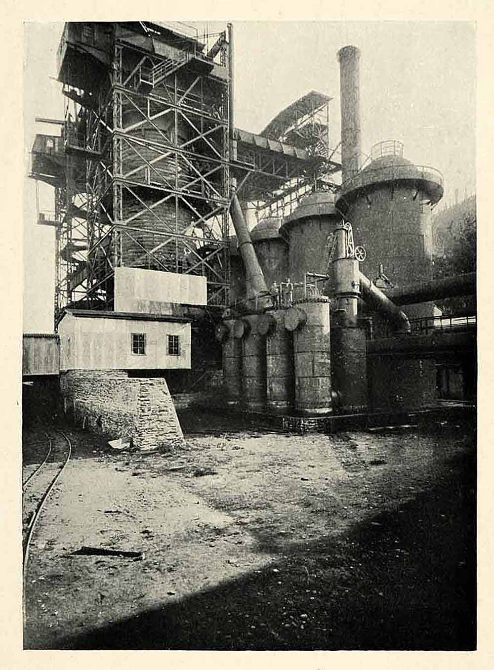 This is an original 1914 halftone print of the iron works plant in Corral, Chile.