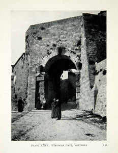 This is an original 1914 black and white halftone print of the Porta all'Arco (Arco Gate), an Etruscan gate in Volterra, Italy.