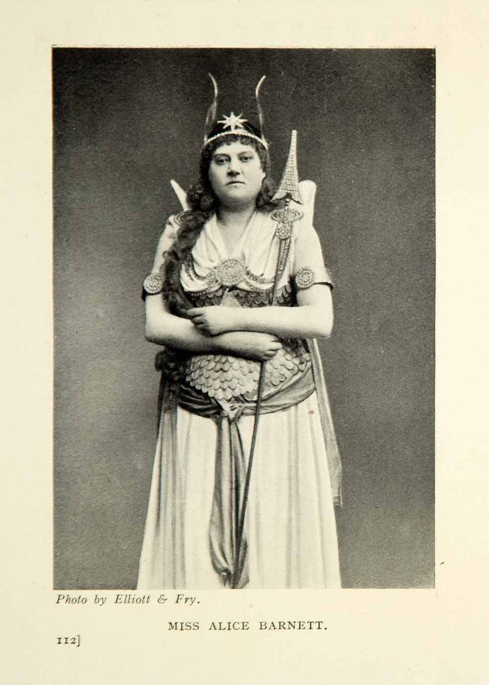 This is an original 1914 black and white halftone print portrait of Miss Alice Barnett. Barnett was an English singer and actress, best known for her performances in contralto roles of the Gilbert and Sullivan operas with the D'Oyly Carte Opera Company.