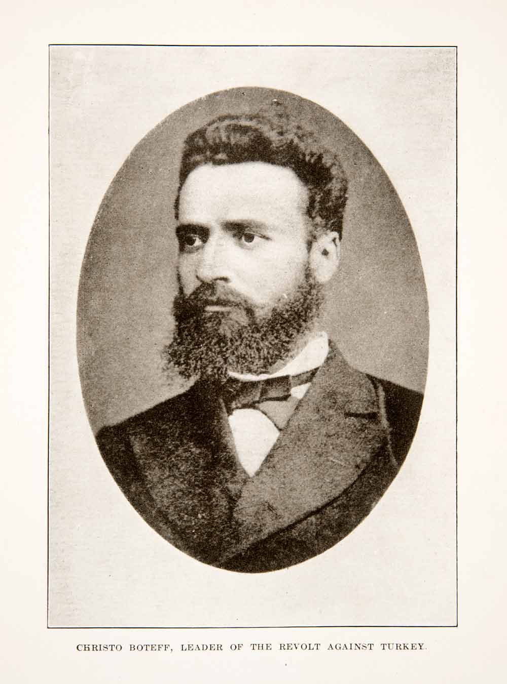 This is an original 1914 black and white halftone print portrait of Hristo Botev, who was the leader of the revolt against Turkey in Bulgaria.