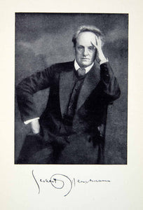 This is an original 1914 black and white halftone print of a portrait of Gerhardt Hauptmann who was a German dramatist that received the Nobel Prize in Literature.