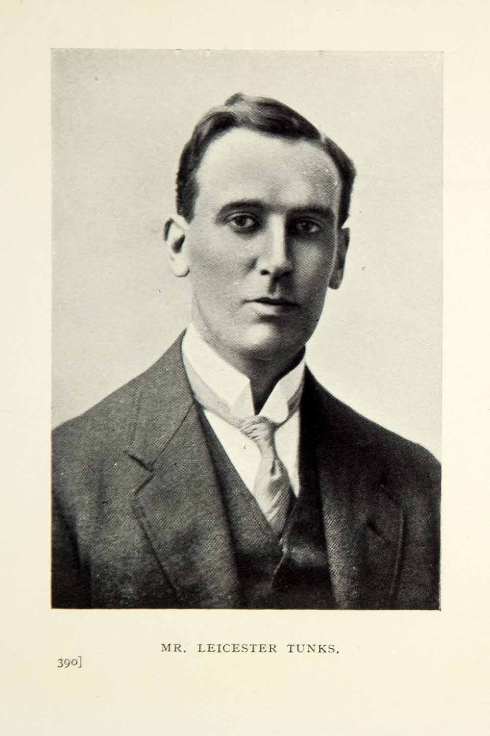 This is an original 1914 black and white halftone print portrait of Mr. Leicester Tunks. Tunks was known for his involvement with the D'Oyly Carte Opera Company.