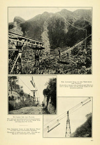 This is an original 1914 halftone print of various pulleys located on the edge of the forests at New Hornow, where sawmills are located. The pulleys run from New Hornow to Mkumbara, which is the nearest railroad station on the Paganis Plains.