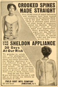 This is an original 1914 black and white print ad for the Sheldon Appliance from the Philo Burt Mfg. Company, 327 24th Street, Jamestown, N.Y.