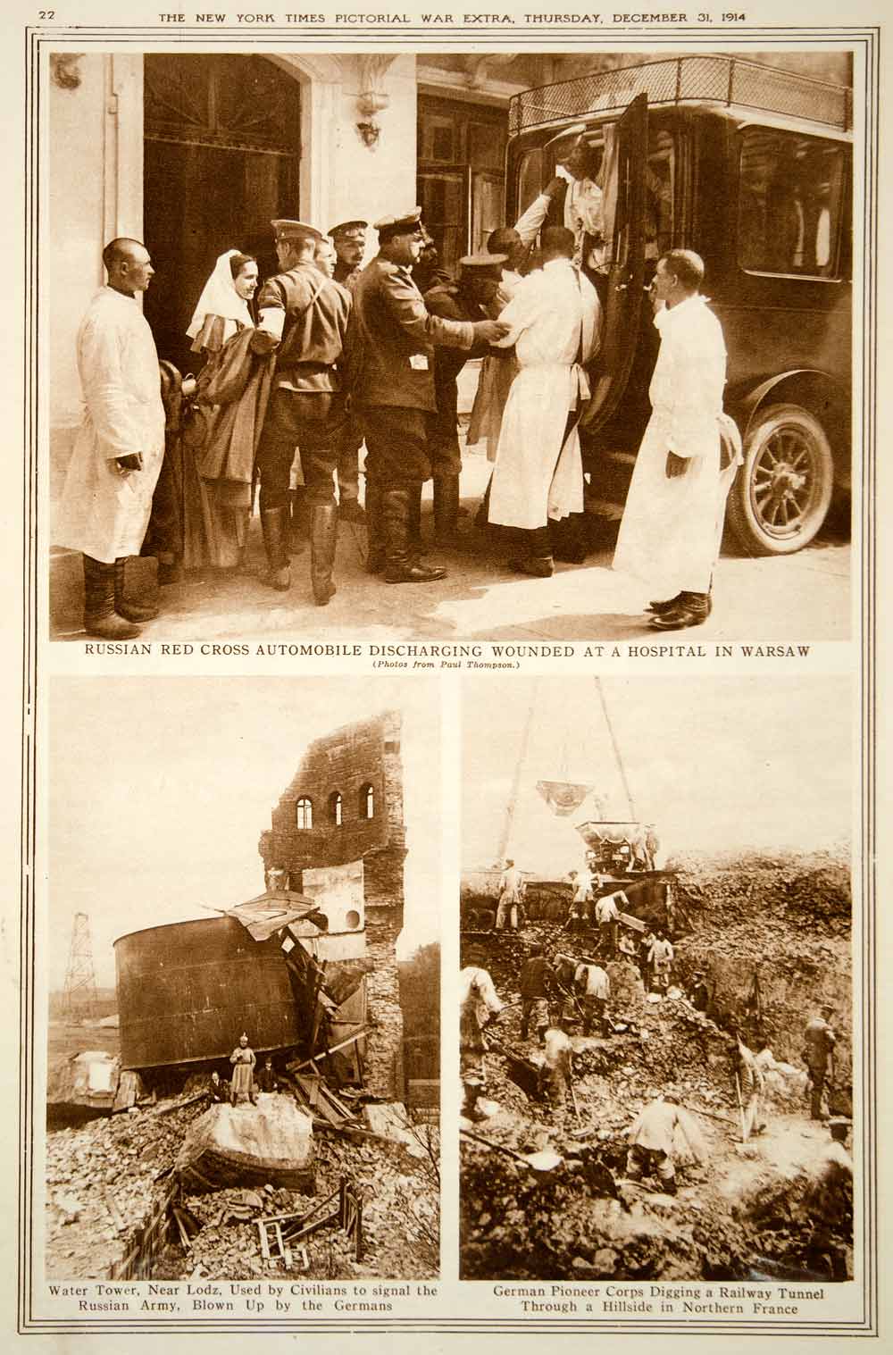 1914 Rotogravure World War I Russian Red Cross Ambulance Warsaw Wounded YNY2