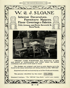 This is an original 1915 black and white print ad for W. & J. Sloane, located at Fifth Avenue and 47th Street in New York. This particular ad featured Dryad Cane Furniture.