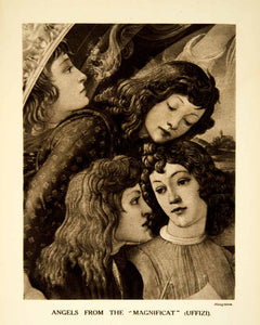 This is an original 1915 monochrome photogravure that depicts the angels from early Renaissance artist Sandro Botticelli's