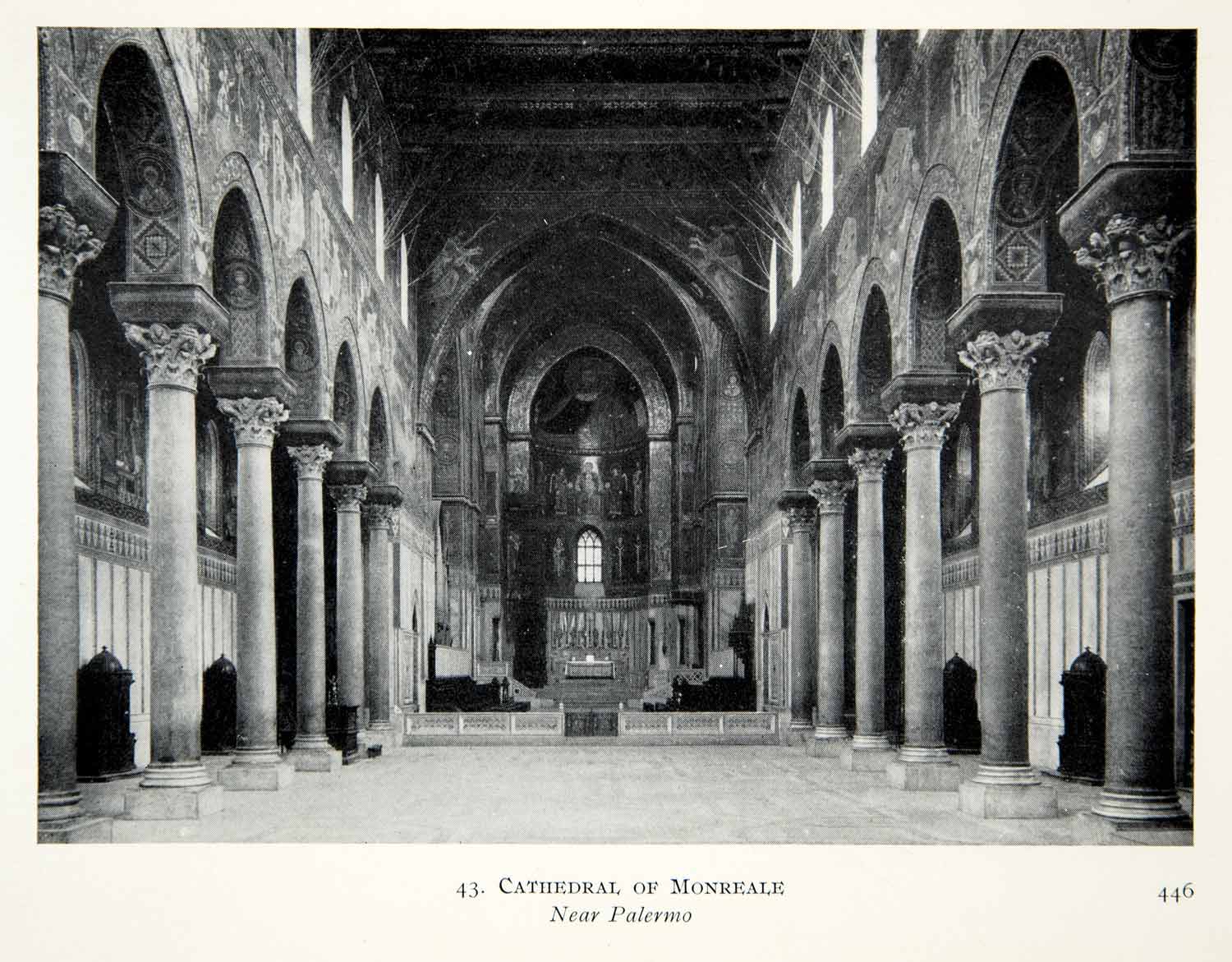 This is an original 1915 black and white halftone print of the Cathedral of Monreale near Palermo, Italy.
