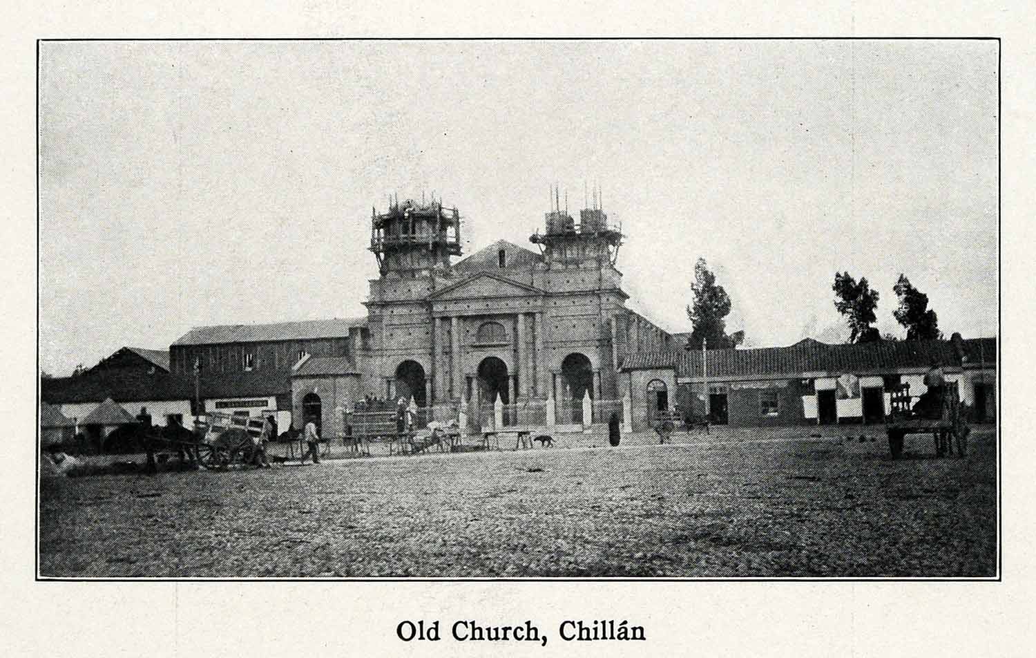 This is an original 1915 halftone print of the Old Church located in the city of Chillán located in the region of Biobio in Chile.
