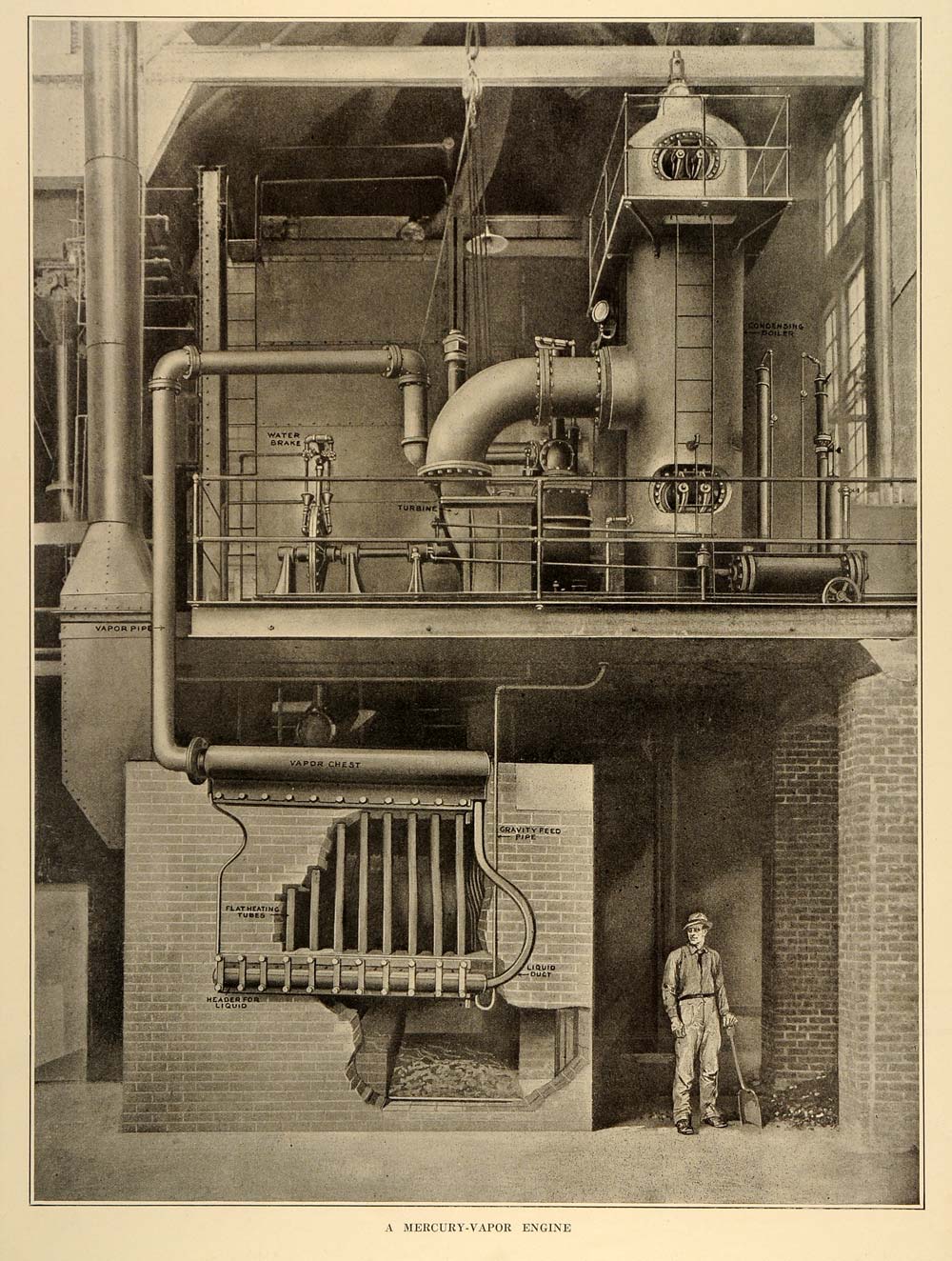 This is an original 1915 halftone print of a diagram of a mercury-vapor engine. (Please note that there is printing on the reverse.)