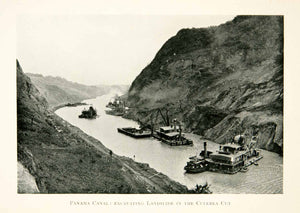 1915 Print Panama Canal Excavation Culebra Cut Landslide Ships South XGOC6
