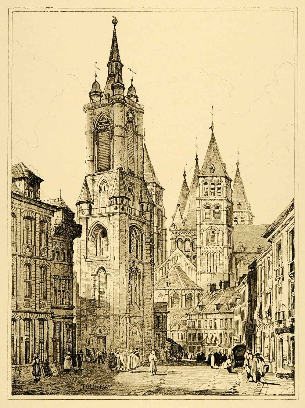 1915 Print Prout Art Tournai Hainaut Belgium Belfry Tower Cityscape XDA6