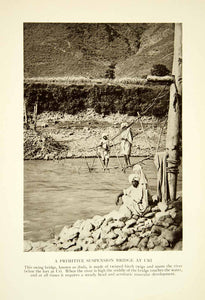 This is an original 1915 sepia halftone print of Indian natives crossing a