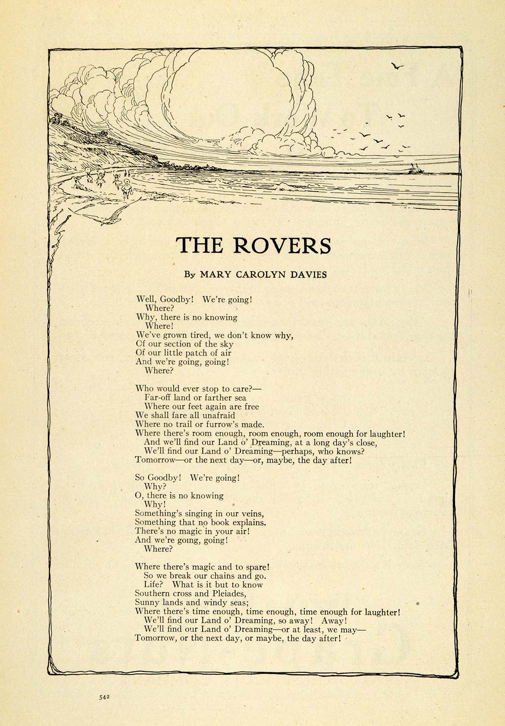 This is an original 1915 halftone print of "The Rovers" poem by Mary Carolyn Davies.