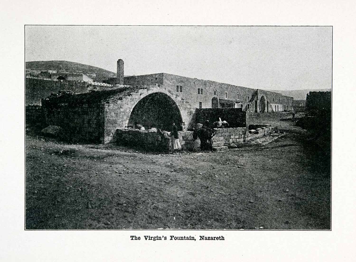 This is an original 1915 black and white halftone print of the Virgin's Fountain in Nazareth, Israel.