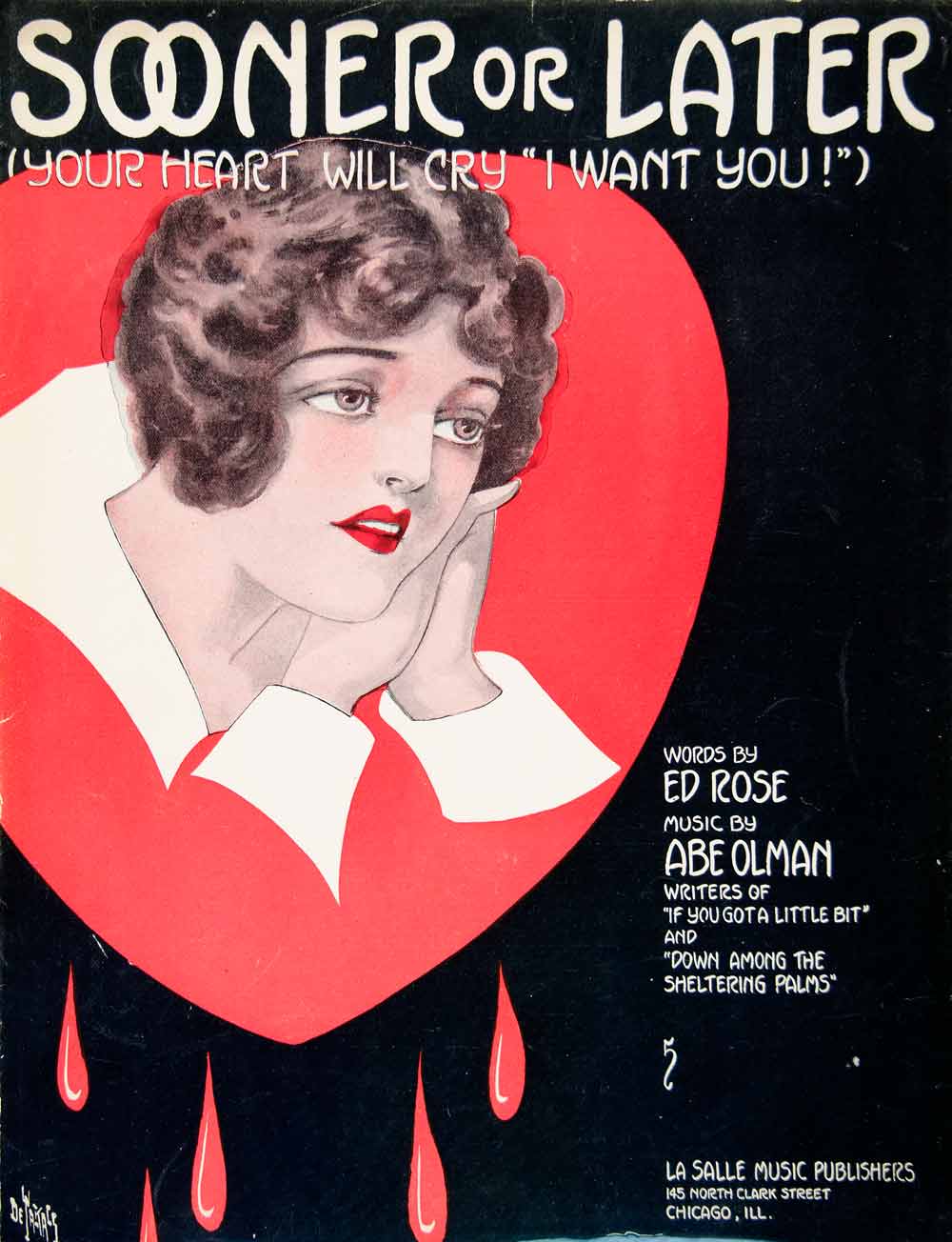 1915 Sooner Later Heart Romance Love Sheet Music Song Ed Rose Andre De SM3