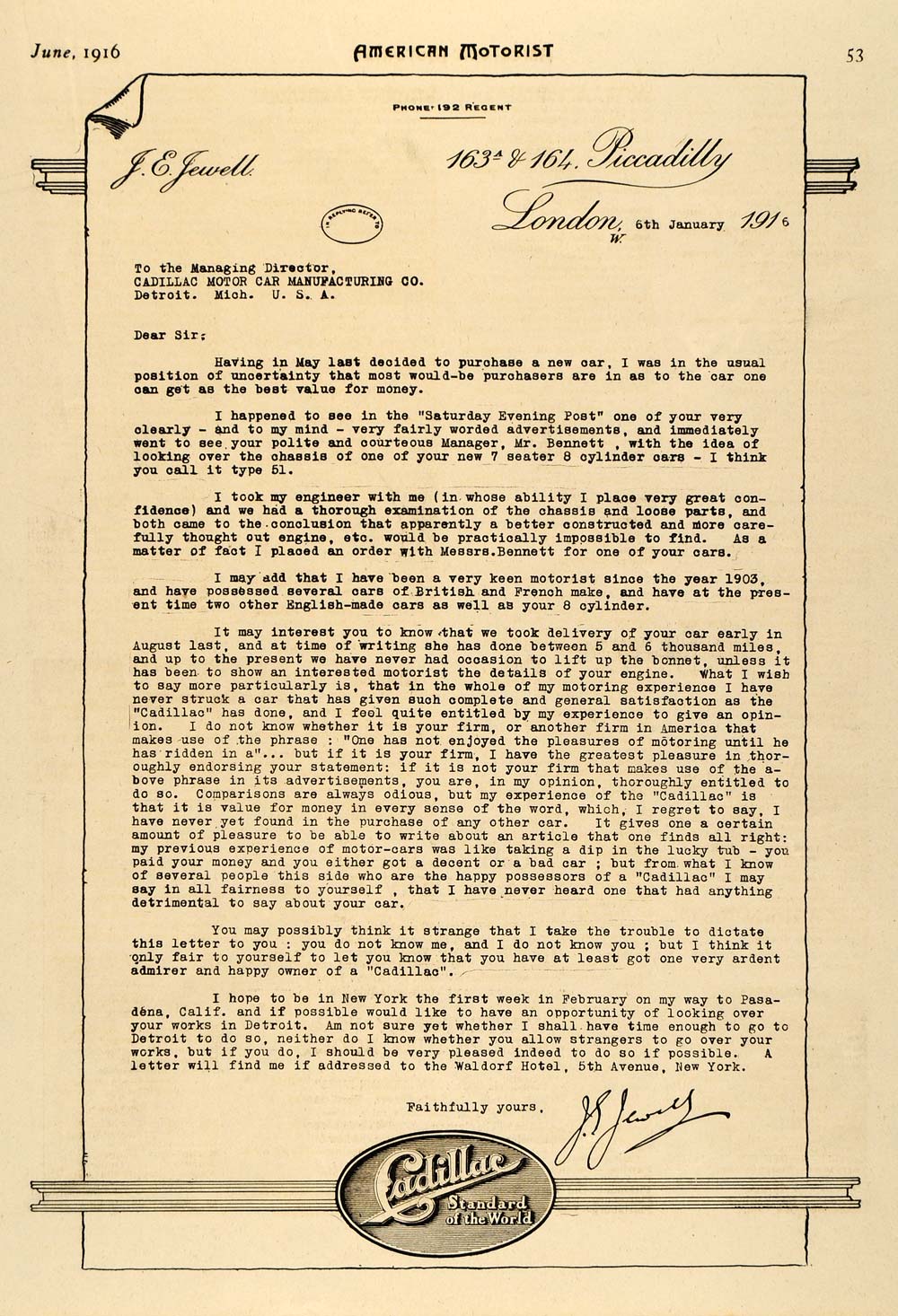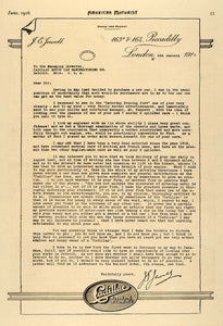 Keywords specific to this image: customer appreciation letter, Waldorf Hotel, J. and Jewell, 163 164 Piccadilly London, Vintage Advertising