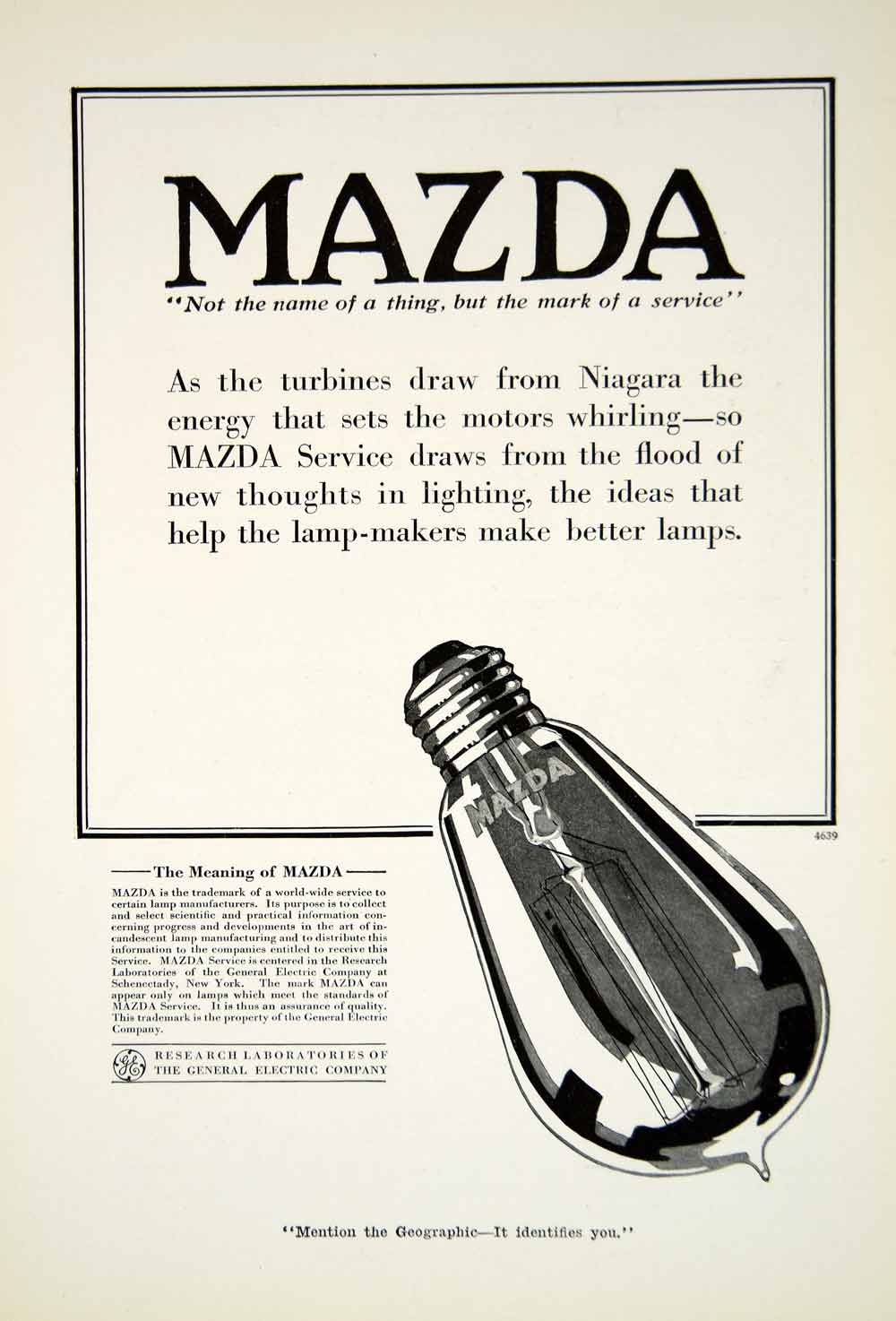 This is an original 1916 black and white print ad for the Research Laboratories of the General Electric Company, featuring their Mazda lighting.
