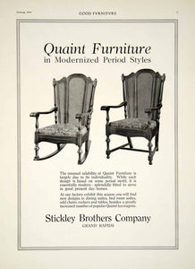 This is an original 1916 black and white print ad for "quaint furniture" from the Stickley Brothers Company of Grand Rapids, Michigan.