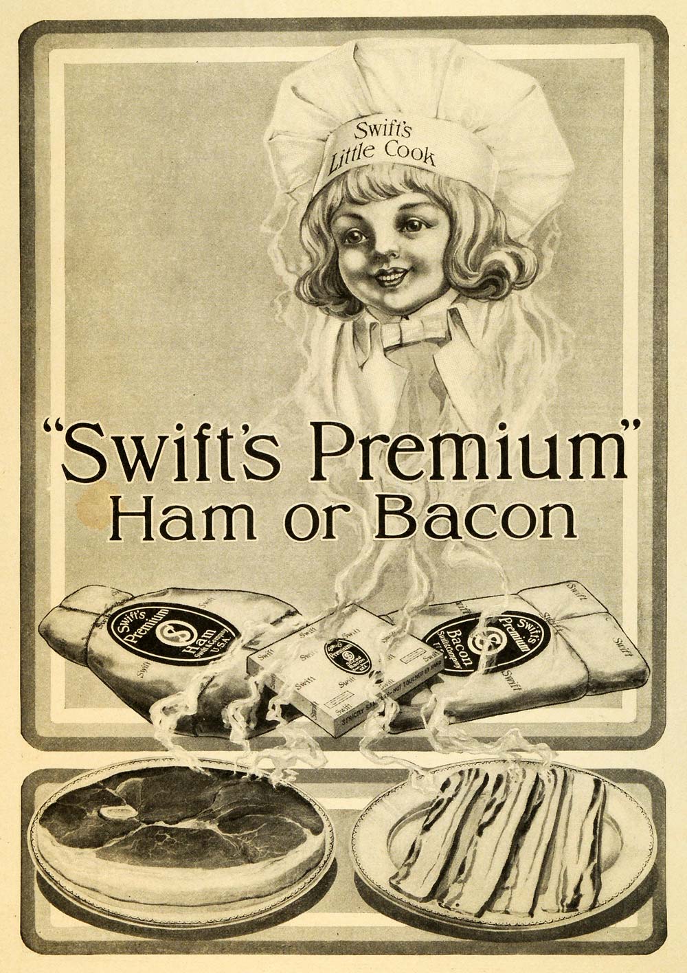 This is an original 1916 black and white print ad for Swift's Premium Ham and Bacon.