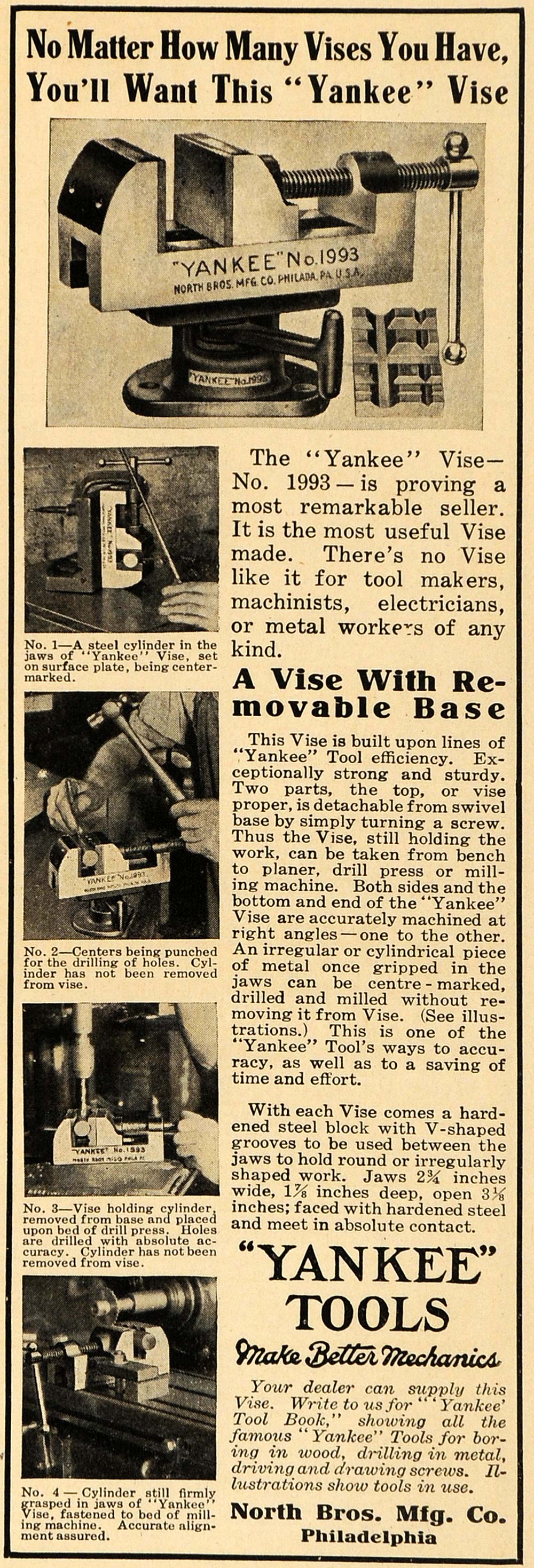 This is an original 1916 black and white print ad for Yankee Tools from the North Bros. Mfg. Co. located in Philadelphia.