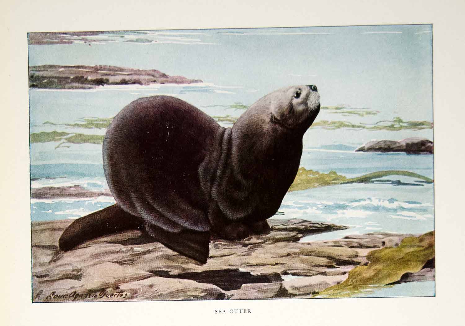 This is an original 1916 color print of a Sea Otter, by Louis Agassiz Fuertes.