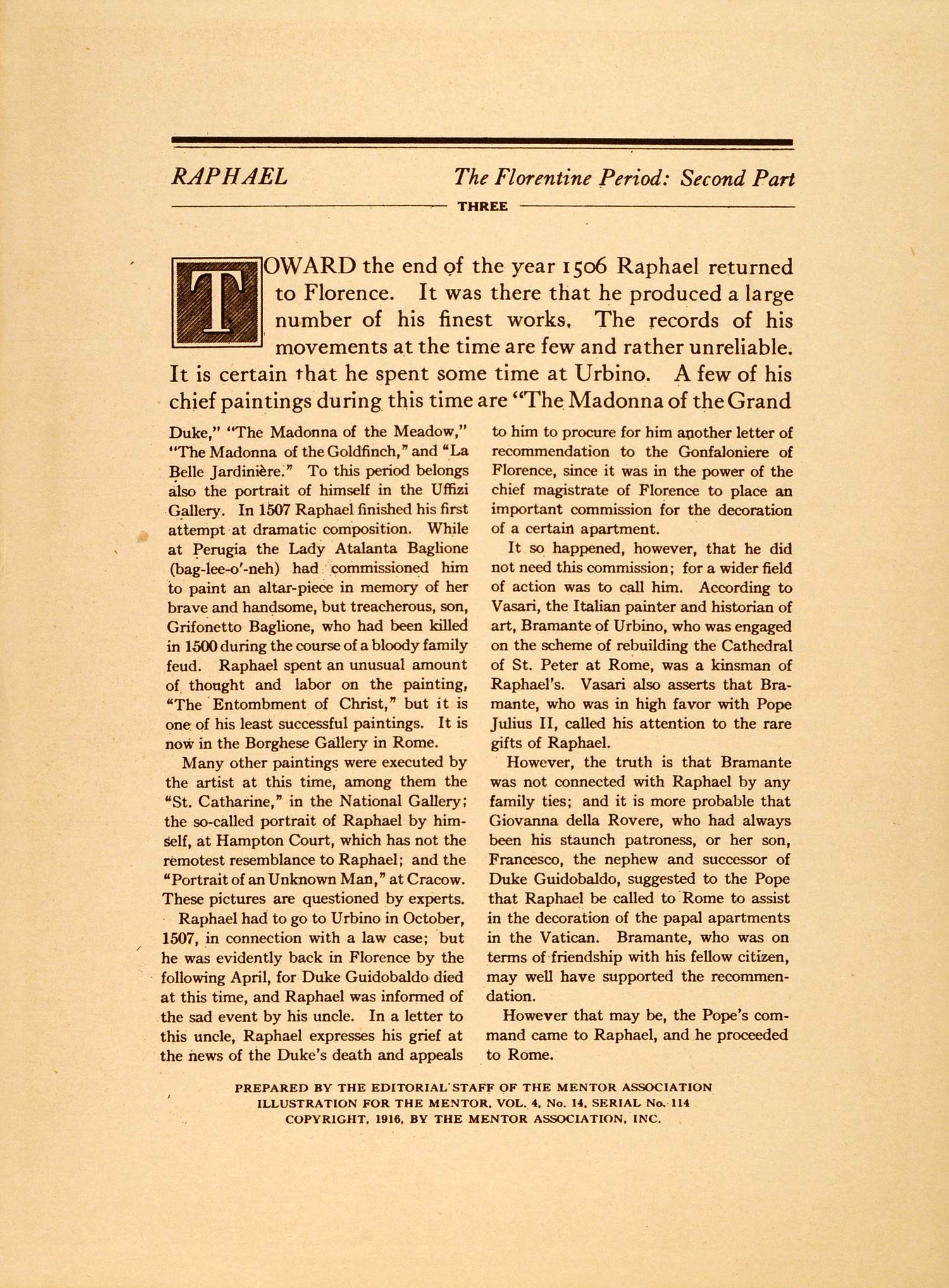 This piece was illustrated by Raphael. Artist name printed on page - bottom center of image.