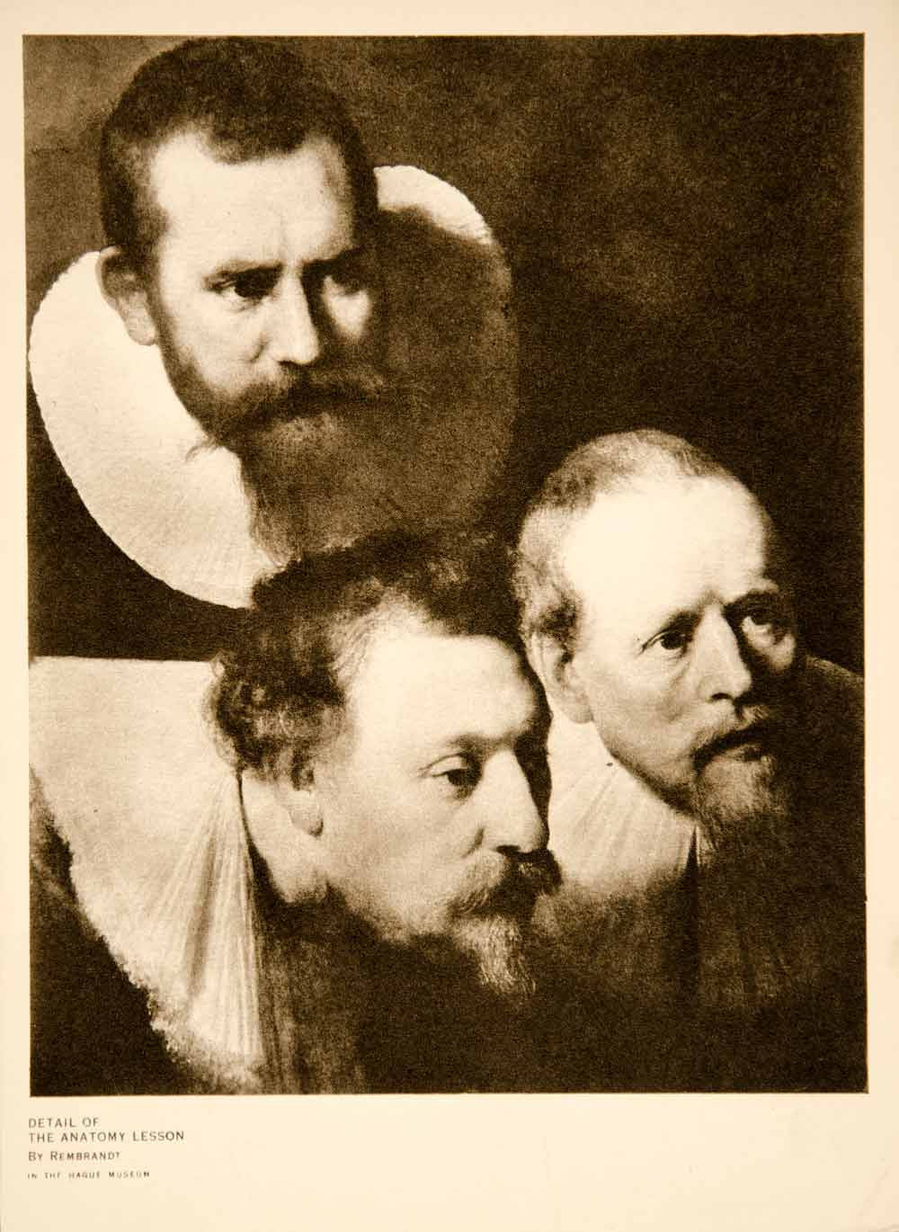 This is an original 1916 black and white photogravure of a detail from Rembrandt's famous painting "The Anatomy Lesson". Please note that there is a brief descriptive text about the artist on the reverse. Please see both images.