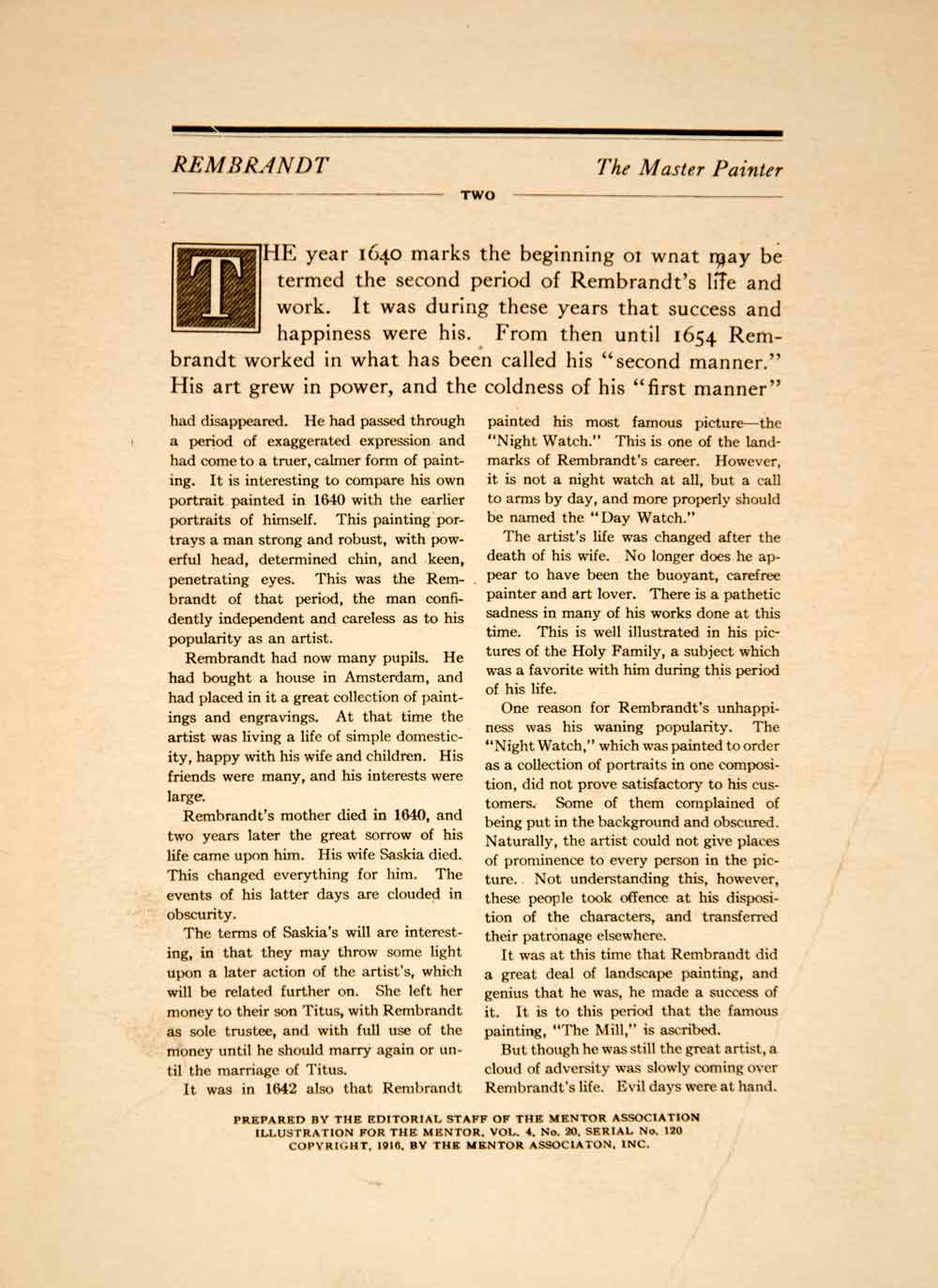 This piece was illustrated by Rembrandt. Artist name printed on page - bottom left of image.