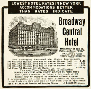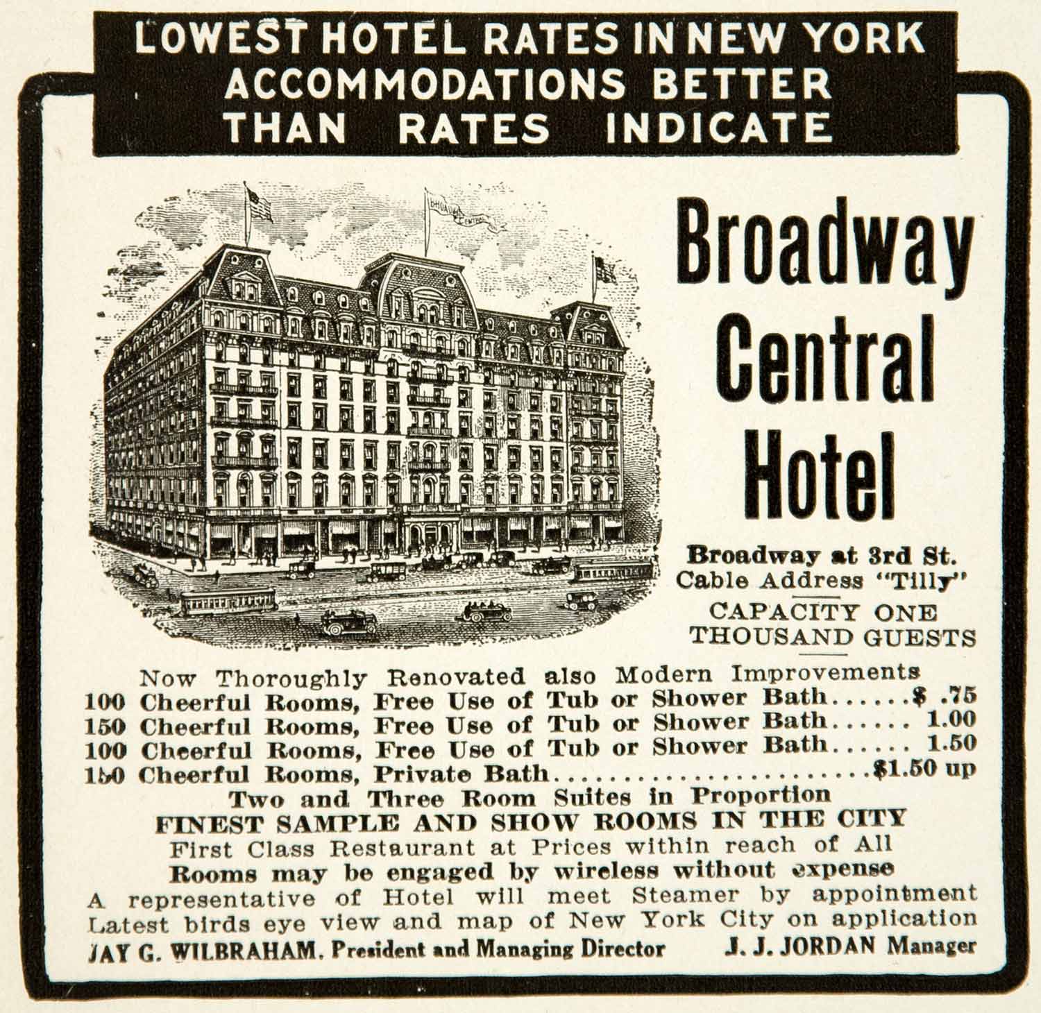 This is an original 1917 black and white print ad for the Broadway Central Hotel, Broadway at 3rd St. in New York.