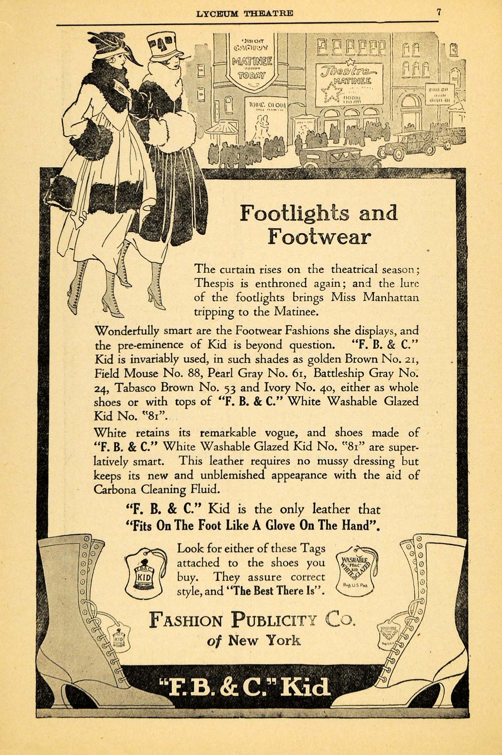 This is an original 1917 black and white print ad for the Fashion Publicity Company of New York. The ad features an image of the "F. B. & C." Kid.