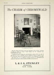 This is an original 1917 black and white print ad for cottage furniture with the Chromewald finish from L. & J. G. Stickley of Fayetteville, NY.