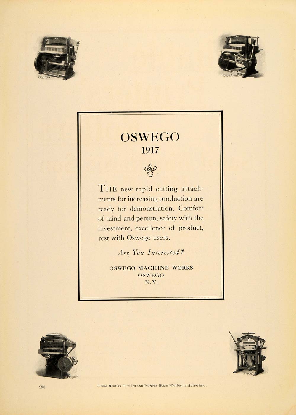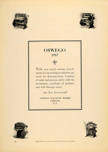 This is an original 1917 black and white print ad for the Oswego Machine Works, located in Oswego, New York.
