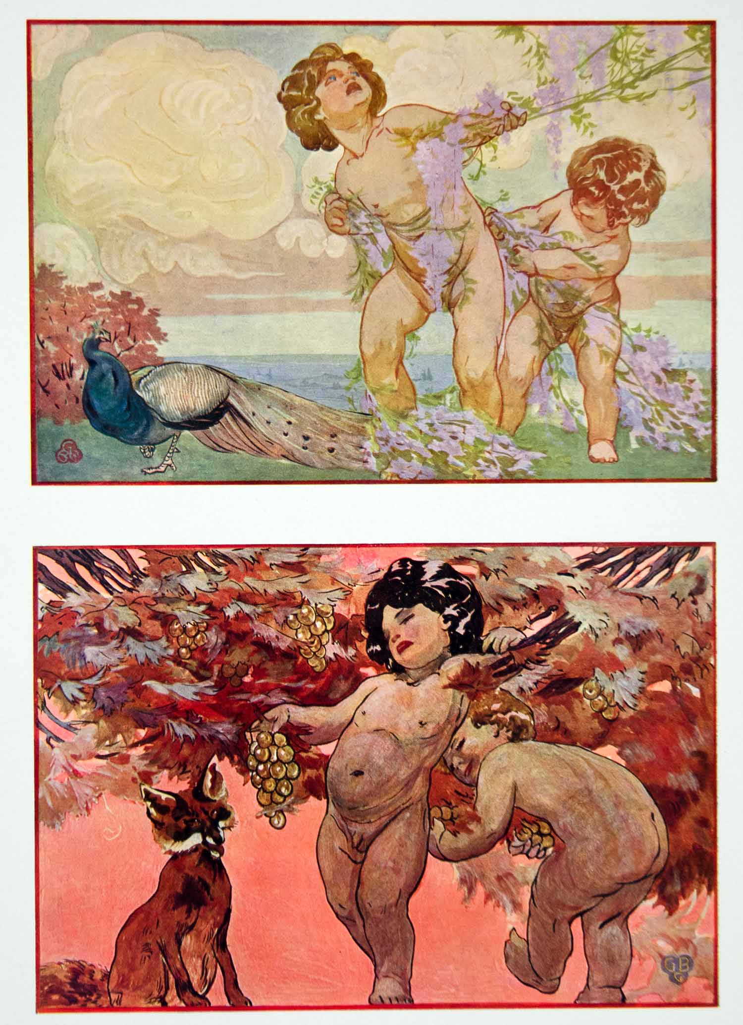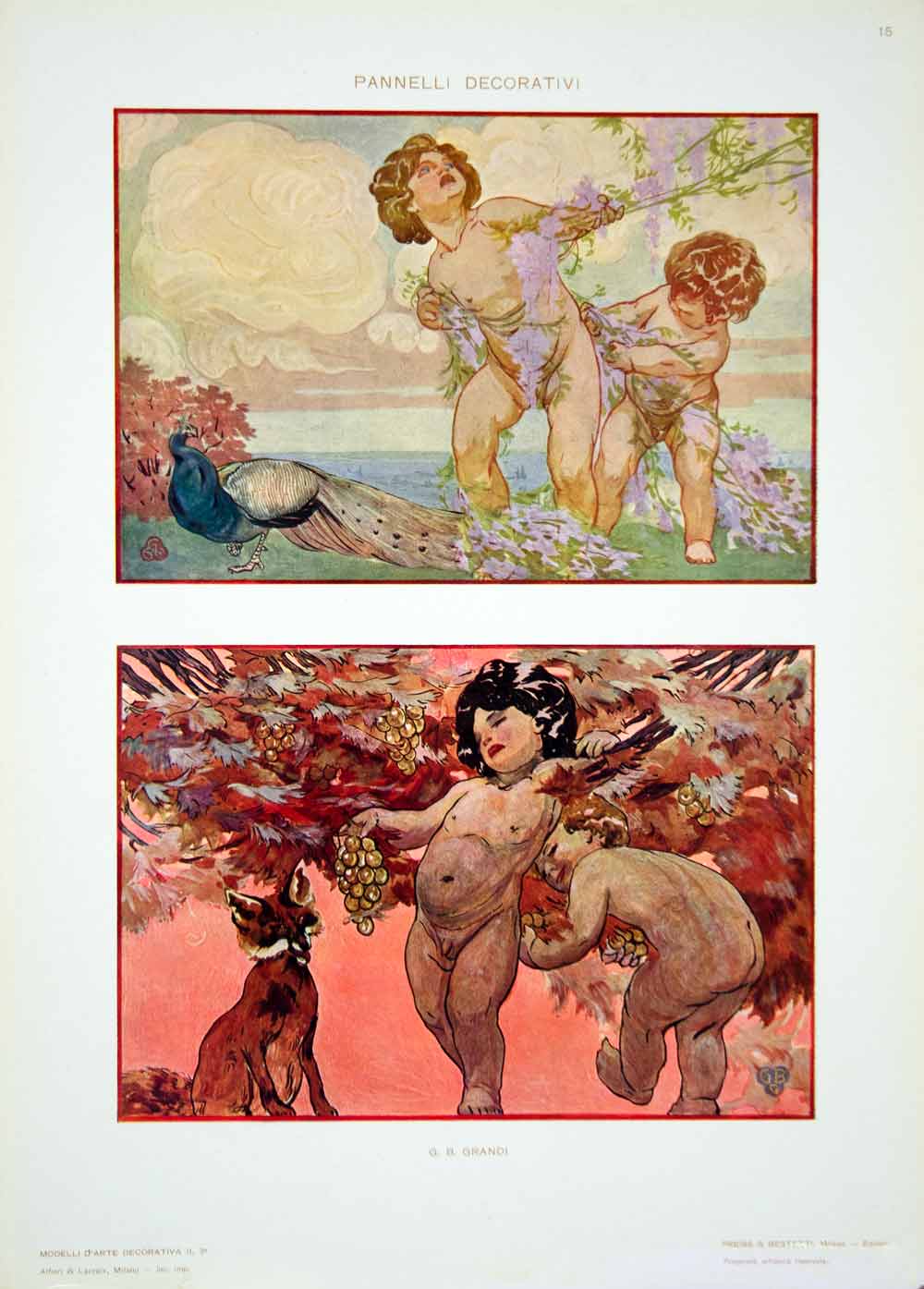 This is an original 1917 color photolithograph of two Art Nouveau decorative panels by G. B.Grandi.