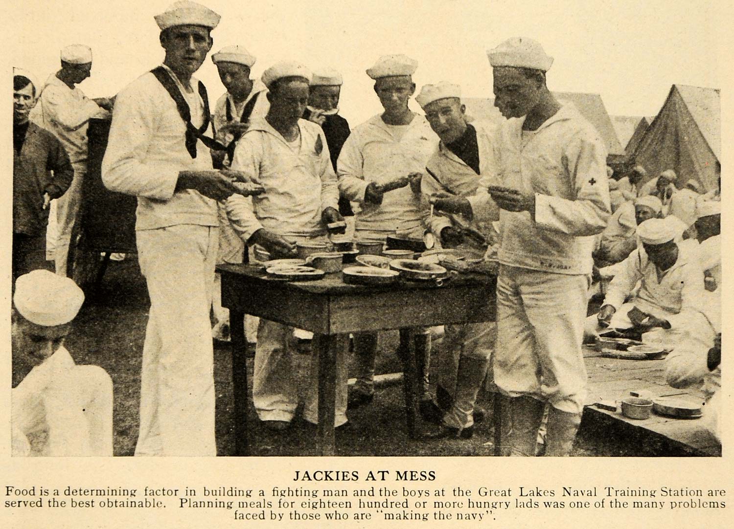 This is an original 1917 halftone print of Jackies at mess at the Great Lakes Naval Training Station.