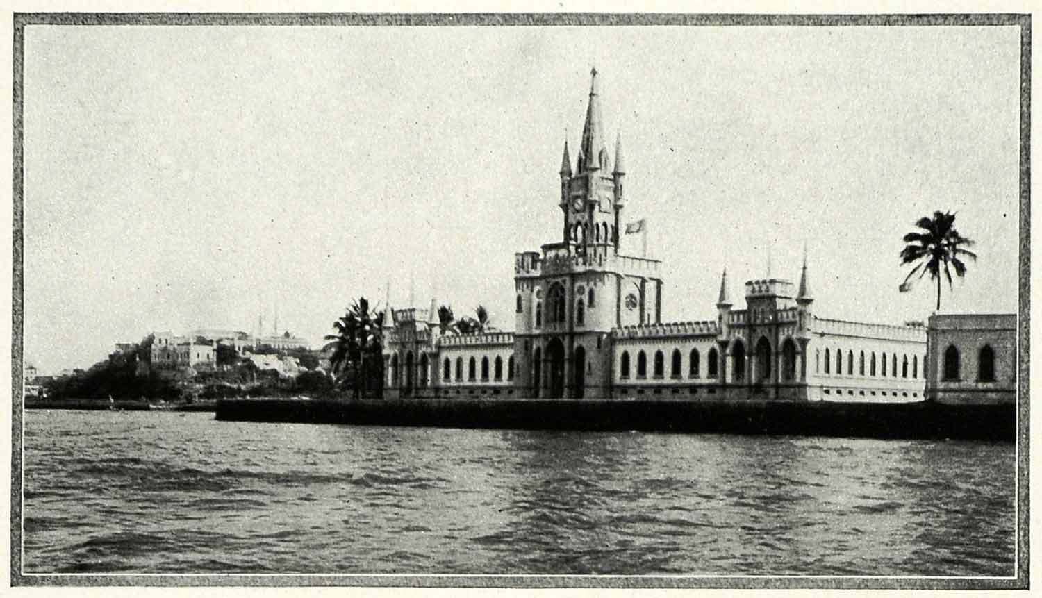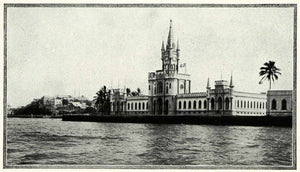 This is an original 1917 halftone print of the palace on Fiscal Island, located in Rio de Janeiro, Brazil. It was formerly the home of Dom Pedro.