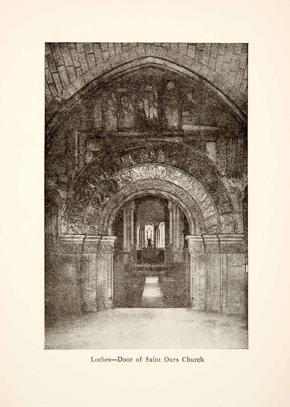 This is an original 1917 black and white halftone print of "Loches--Door of Saint Ours Church," in Tours, France.