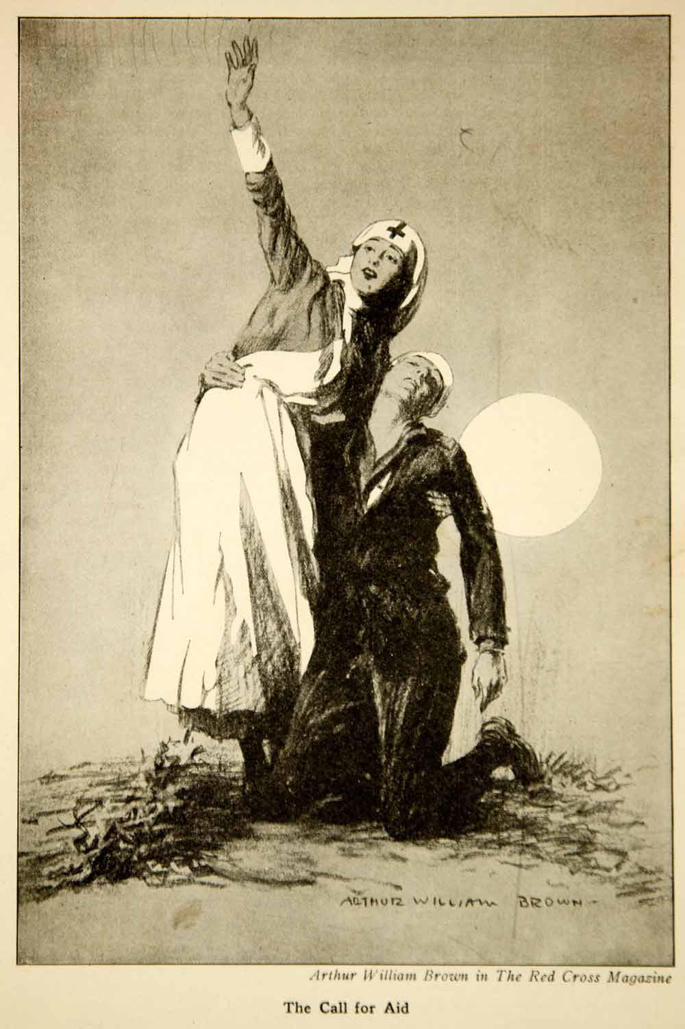 1917 Print World War I Arthur William Brown Art Red Cross Nurse Wounded Soldier