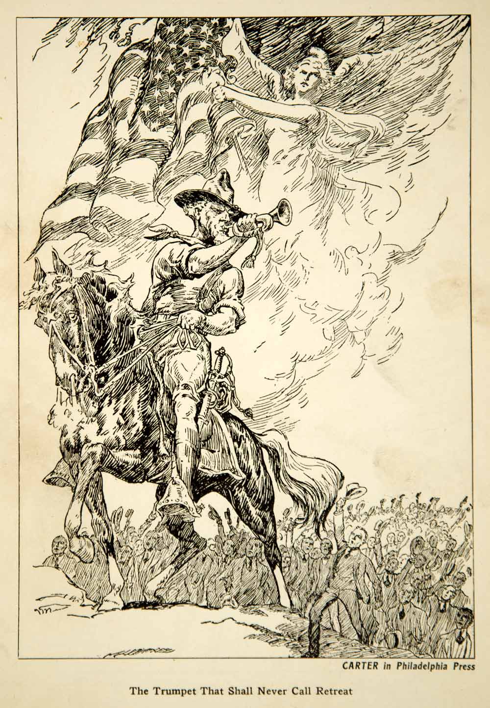 1917 Print World War I Cartoon Robert Carter Trumpet Cavalry Charge Lady Liberty
