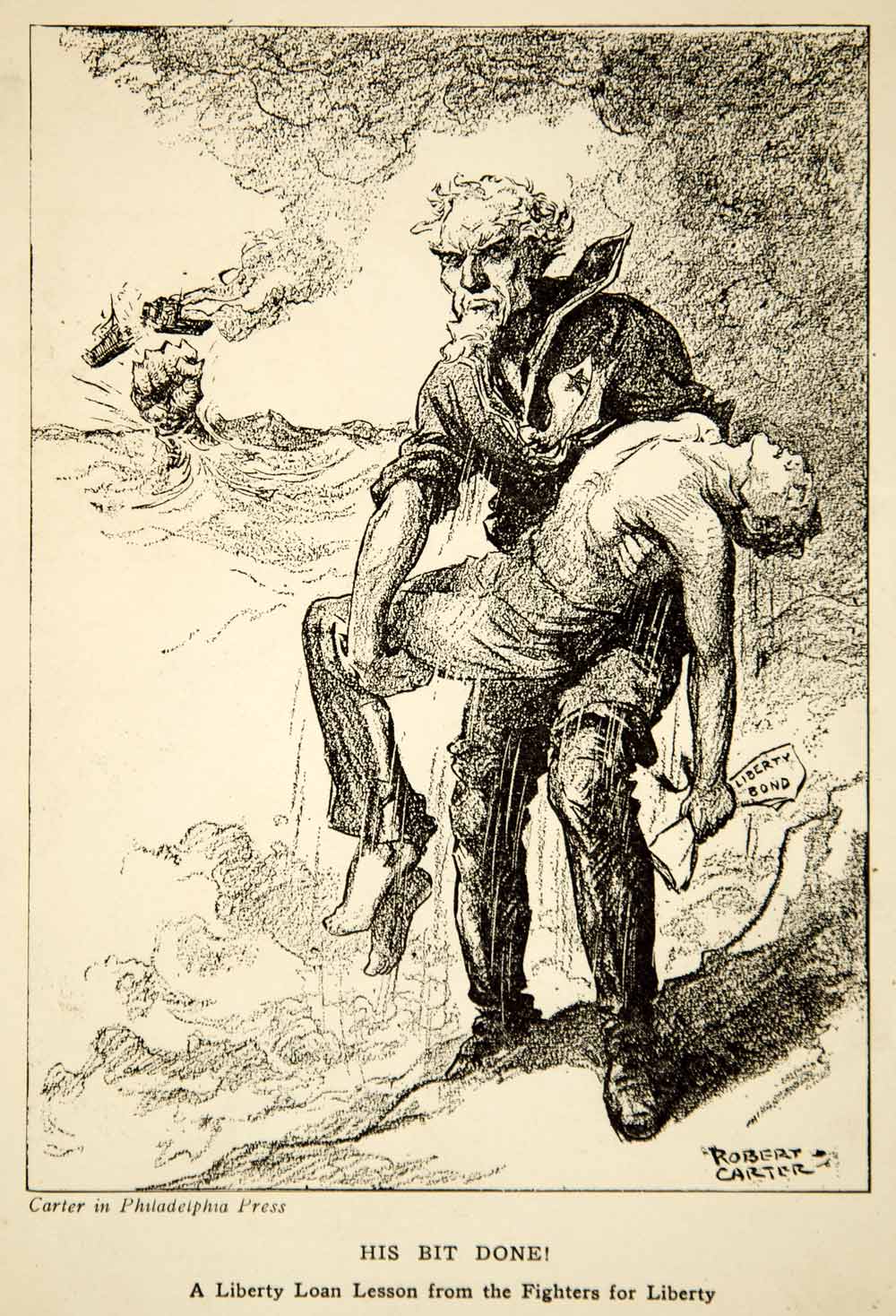 1917 Print World War I Cartoon Robert Carter Uncle Sam Dead Salor Liberty Bond