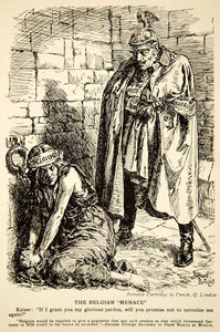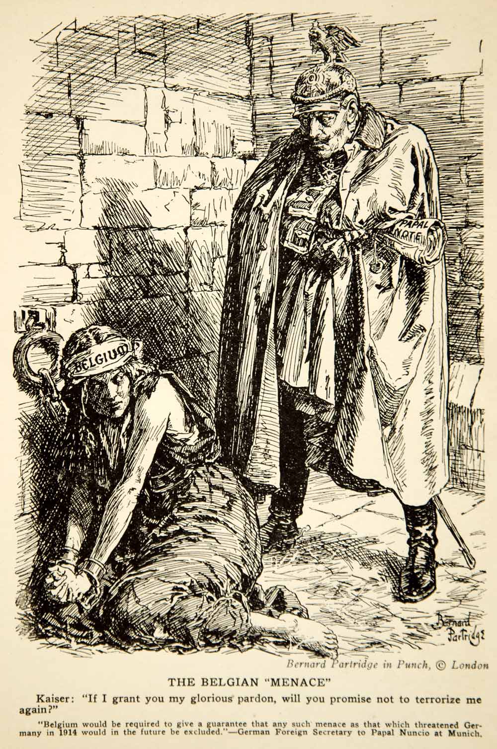 1917 Print WWI Cartoon Art Bernard Partridge Punch Kaiser Wilhelm Belgian Menace